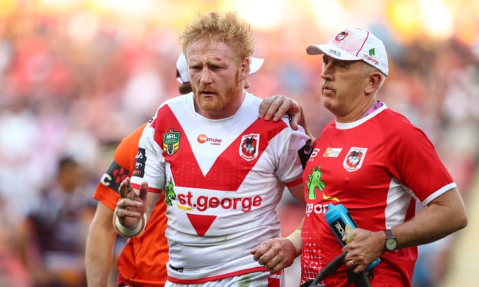 James Graham gra i będzie to robił. . Pierwszy wioślarz St George Illawarra Dragons i reprezentant Anglii mówi, że emocje związane z ligą rugby przeważają nad ryzykiem urazu mózgu. Twierdzi, że ludzie nadużywają alkoholu i tytoniu, mimo że znają ryzyko. Mówi, że jego babcia ma demencję, chociaż nigdy nie grała w ligę rugby. Badał różne rzeczy, przeprowadzał testy na sobie. A on mówi: "Co masz robić?Przestać grać?"